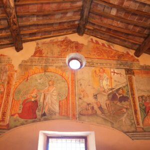 Ospitano lapidari con iscrizioni romane, stemmi, frammenti architettonici e reperti bellici antichi (come le palle di catapulta).