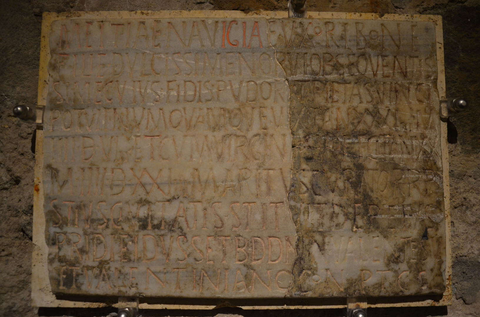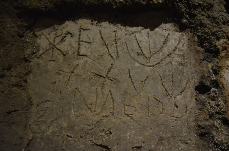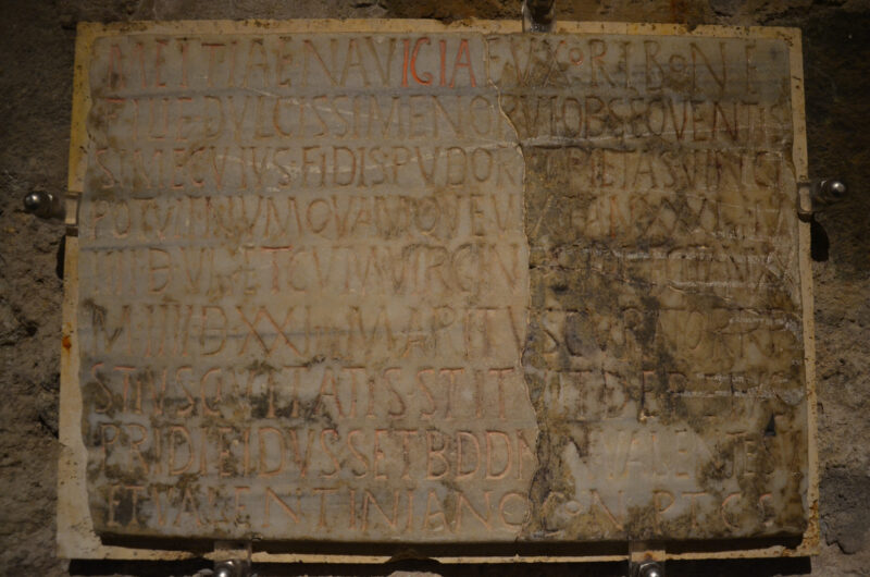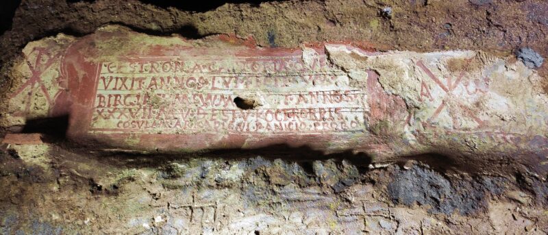 Lungo le pareti, i visitatori possono ammirare antichi affreschi, monogrammi di Cristo e toccanti epigrafi originali, come l’augurio di pace ricorrente PAX TIBI CUM SANCTIS (“Pace a te con i santi”).