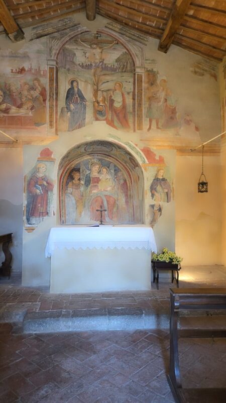 Eine kleine, spektakuläre und einladende Kirche, in der Jäger gewöhnlich zum Gebet verweilten, vor oder nach der Jagd in den an Wild reichen Hügeln von Bolsena.