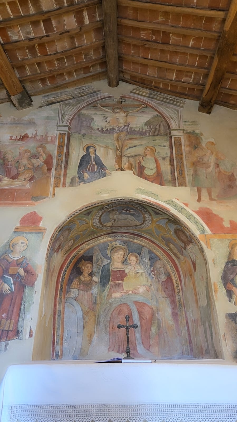 Die Kirche Madonna dei Cacciatori ist heute ein kleines Juwel, restauriert durch den Willen und die tiefe Liebe ihrer Besitzer: Herr Nino Botarelli und seine Frau, Frau Adriana. Ein Traum, der sie im Leben verband und sie auch heute noch verbindet, da „Nino,“ ein großer und vielseitiger Künstler aus Bolsena, nicht mehr unter uns ist.