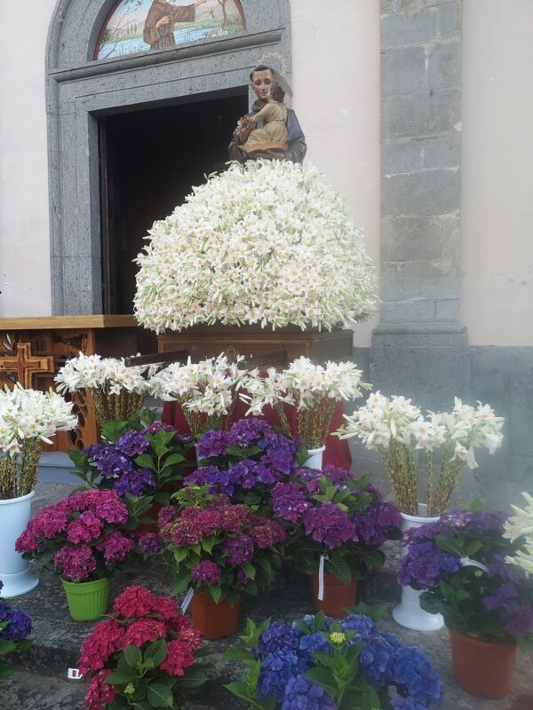 La festa include una processione che si snoda per le vie del paese, durante la quale viene portata in processione la statua del Santo profumata da un numero incredibile di gigli, fiore che riporta alla Madonna del Giglio, appunto.